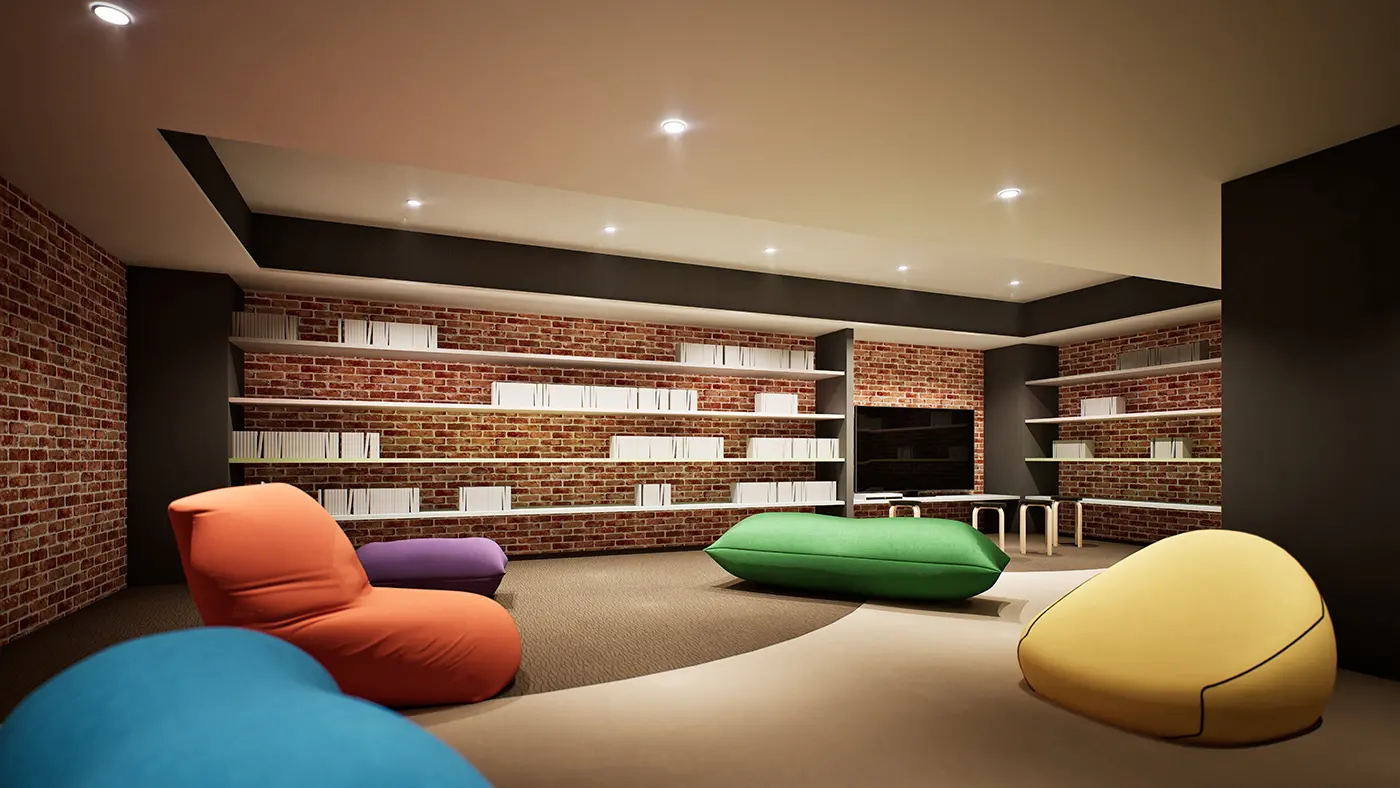 ここで過ごすことが目的になるような、遊び心のある共用スペースです。